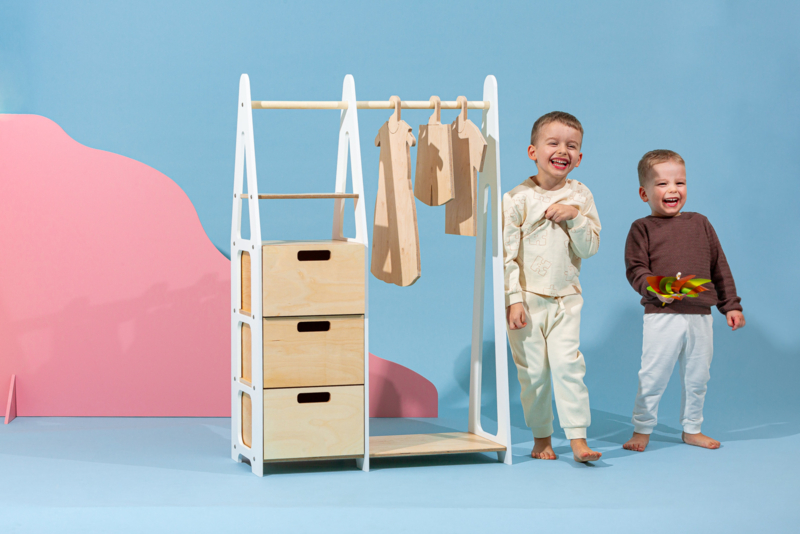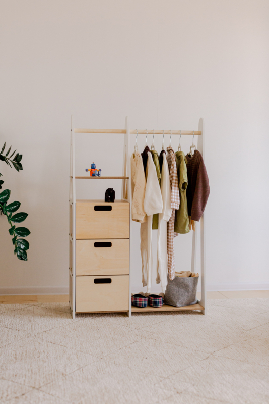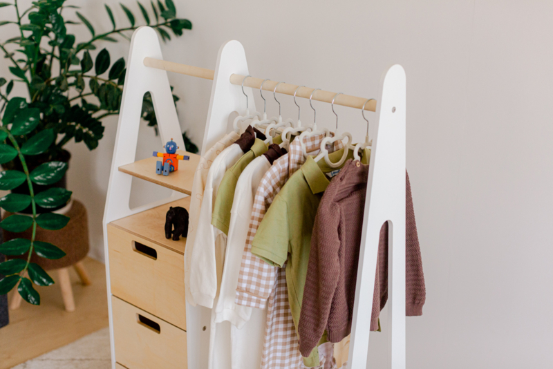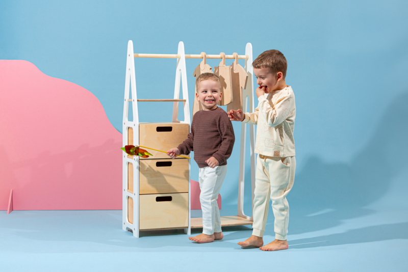 Dit charmante kledingrek is ontworpen met de principes van Maria Montessori in gedachten, waardoor kinderen de vrijheid krijgen om hun eigen kledingkeuzes te maken en verantwoordelijkheid te nemen voor hun spulletjes. Met zijn kindvriendelijke hoogte en toegankelijk ontwerp, moedigt het kledingrek kinderen aan om hun eigen stijl te ontdekken terwijl ze hun zelfredzaamheid ontwikkelen.