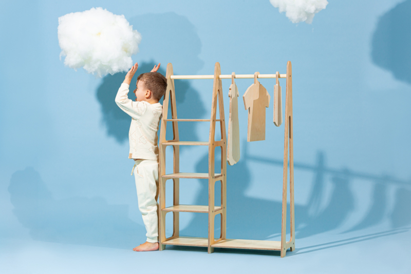 Dit charmante kledingrek is ontworpen met de principes van Maria Montessori in gedachten, waardoor kinderen de vrijheid krijgen om hun eigen kledingkeuzes te maken en verantwoordelijkheid te nemen voor hun spulletjes. Met zijn kindvriendelijke hoogte en toegankelijk ontwerp, moedigt het kledingrek kinderen aan om hun eigen stijl te ontdekken terwijl ze hun zelfredzaamheid ontwikkelen.